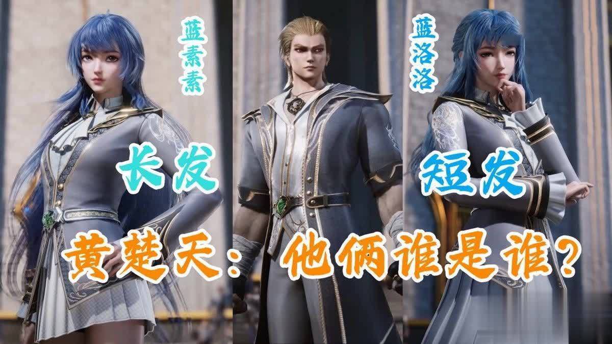 动画中没有单独介绍蓝素素和蓝洛洛,所以即便她们建模有差异,我们也无法完全肯定她们谁是谁。动画中只是在黄楚天介绍她们的时候扭头侧重了一下,所以我们推断按照下图的顺序,左边的是蓝素素,右边的是蓝洛洛。从这张图中我们也明显看得出两姐妹的头发有明显不同,蓝素素和蓝洛洛发色不一样,并且蓝素素的头发比蓝洛洛更长,当然两者的发型也有略微差异,大家可一定要记住这些特点,因为往后你会乱的。