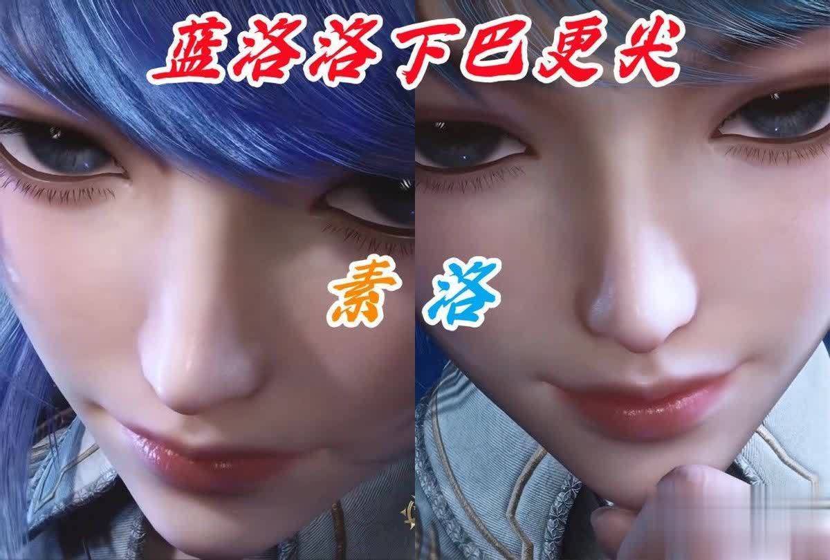 即便是双胞胎,长相上也会有略微差别,我们之前说过两姐妹的长相都很像王冬,而从两人的脸部建模对比中我们发现,蓝素素的眼睛更大,蓝洛洛的眼睛更尖一点,下巴也比蓝素素更长,因为蓝素素整体脸型更浑圆,眼睛更大,所以她的长相其实更像王冬,当然这也不是一成不变的,玄机的建模后面出现了穿帮。